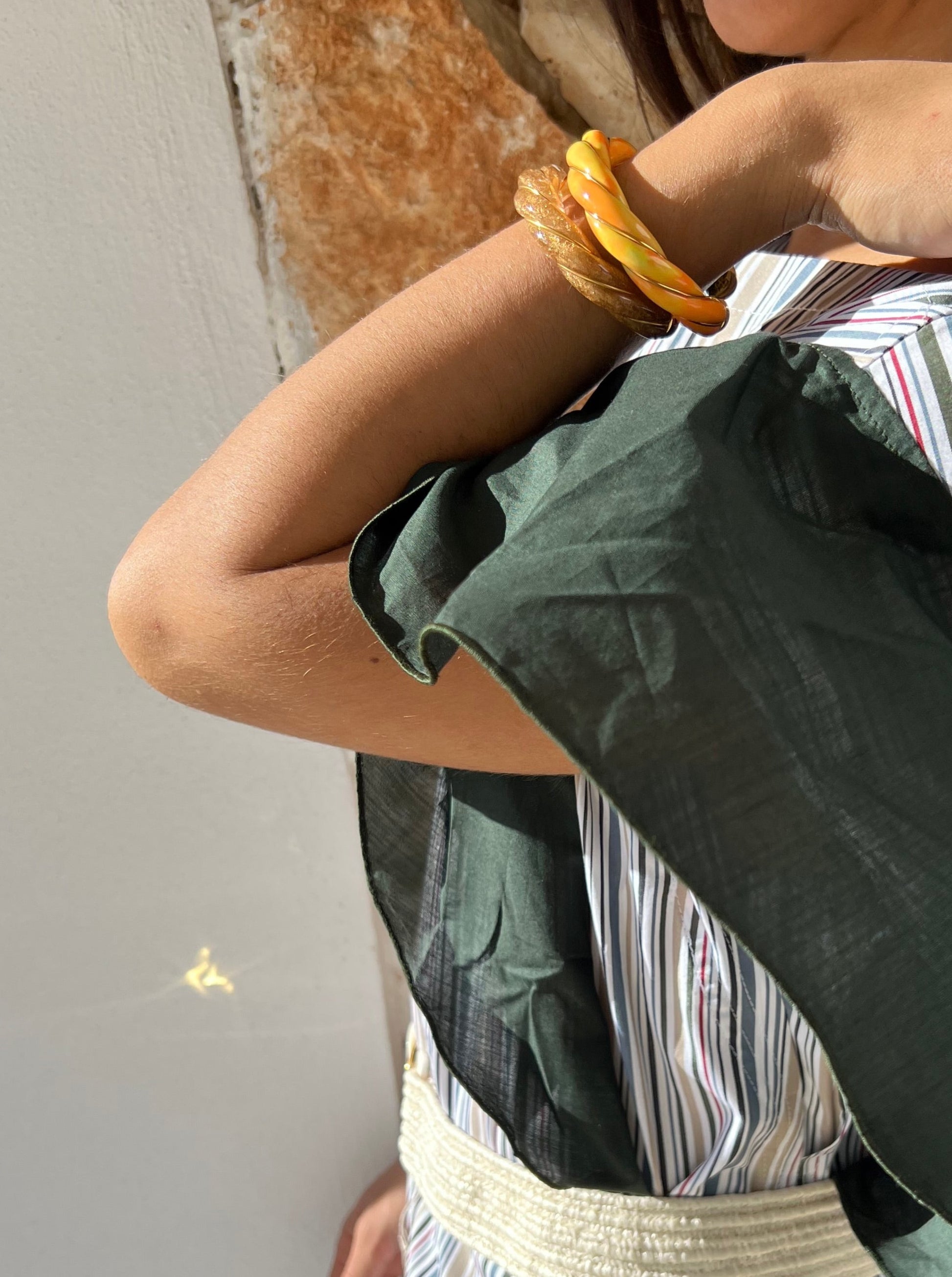 Bracelet jonc torsadé Diana Tie & Dye jaune et orange en résine trempée dans du plaqué or jaune 750/1000.